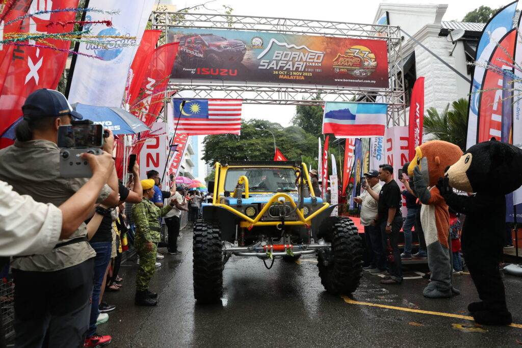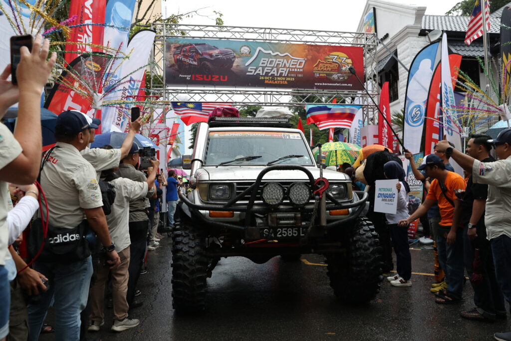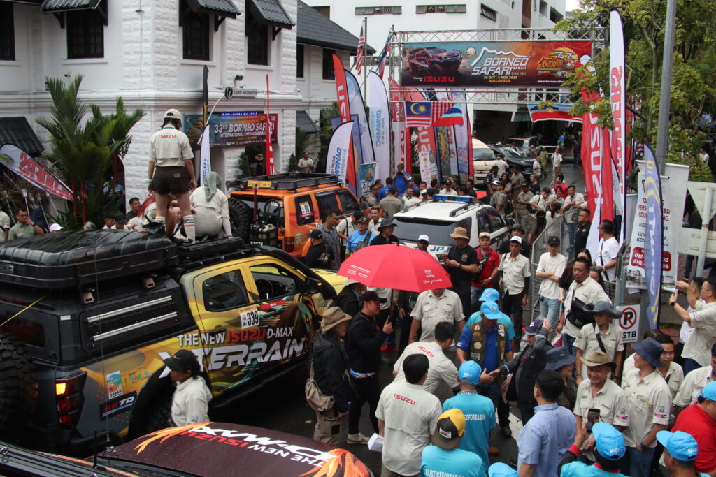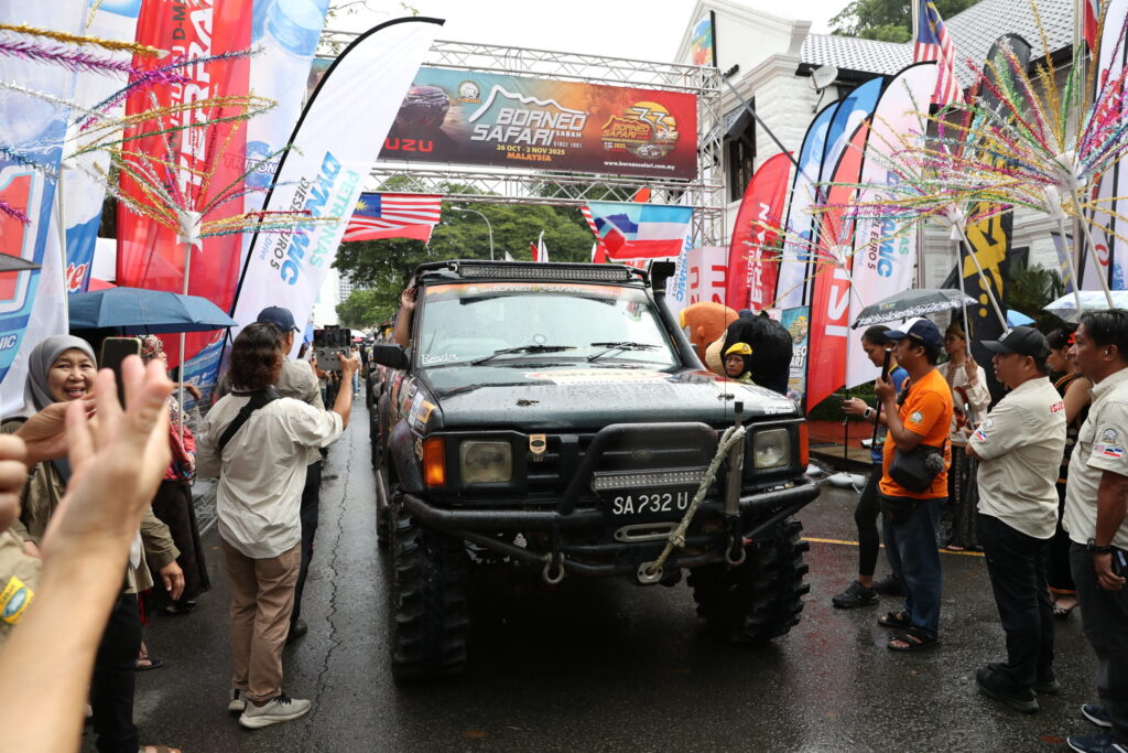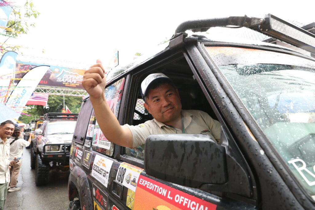 夜半からの激しい雨も収まり、セレモニーがスタートするときは小雨になってきた。いよいよボルネオサファリのフラッグオフが始まる。