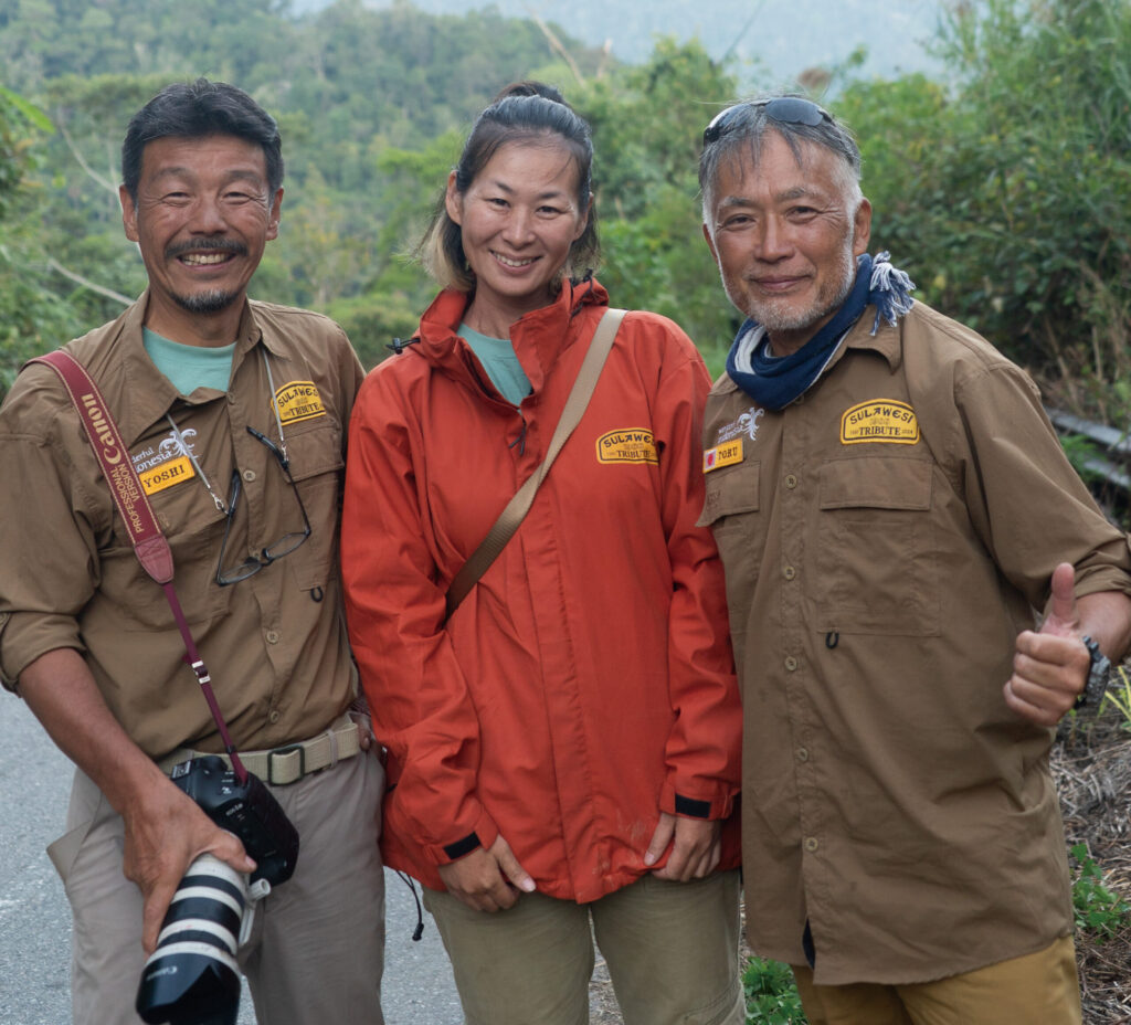 スラウェシ・トリビュートに参加したチームジャパンメンバー。左から筆者・竹村、中央がバリ在住のユウコさん、右がレジャエンド枠で参加したキャメルトロフィー・スラウェシ大会元日本代表の関口徹氏。