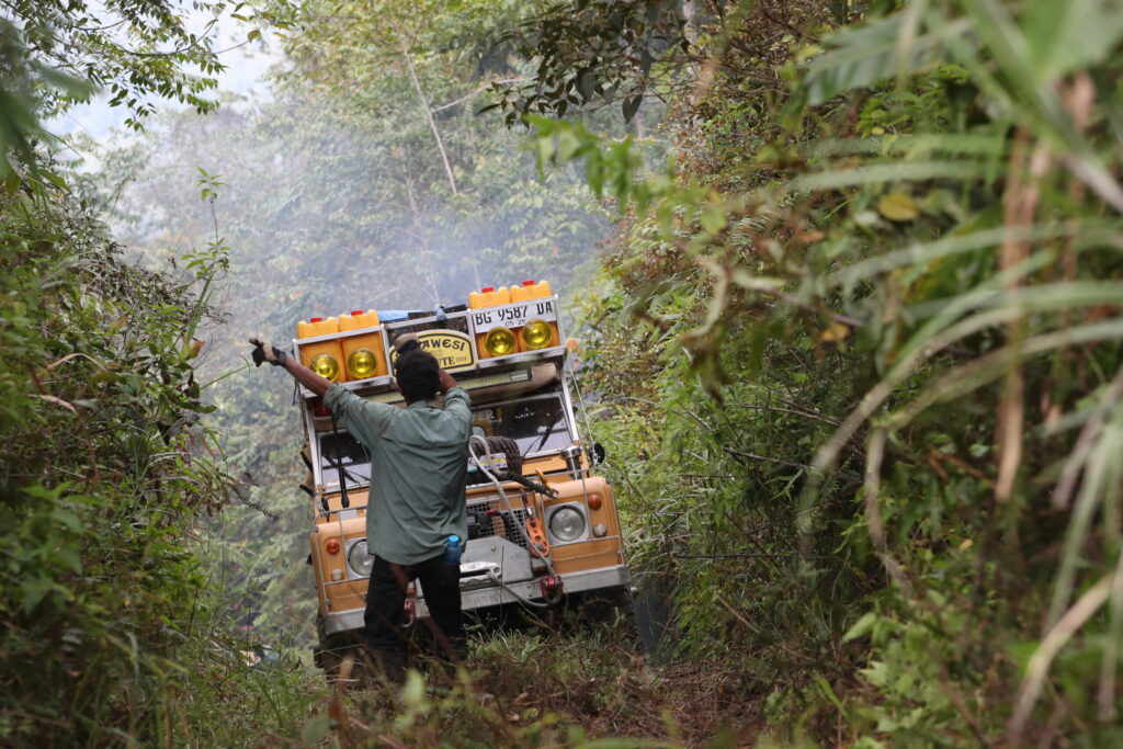 オフロードや痛みの激しい一般道、高度差のある峠越えなど、さすがのランドローバーも音を上げる。スラウェシ島の交通網は、主に飛行機や船などの交通機関でカバーされるため、道路網の整備は置き去りになっている。