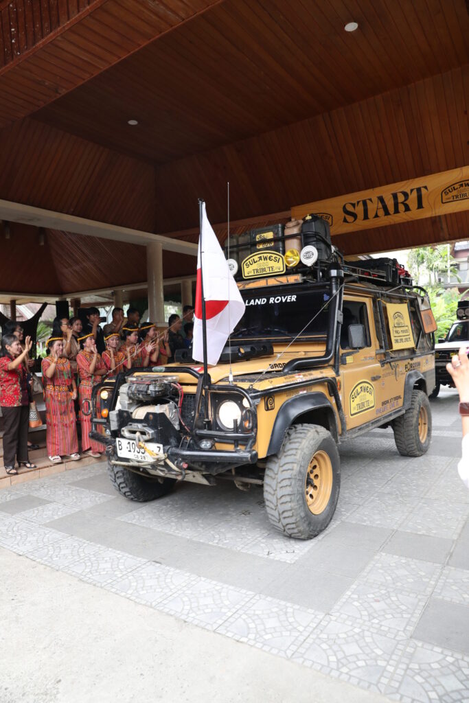 スラウェシ・トリビュートの最難関「プルプルトレイル」に向かうスターティングセレモニーが、1988年のキャメルトロフィーで使われたミシリアナ・トラジャで開催された。