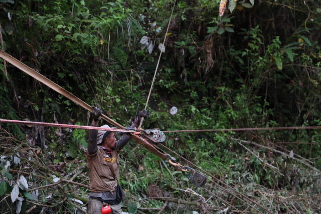 ジャングルではアンカー位置に制約が多いため、このような複雑なケーブリングになることもある。