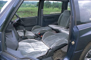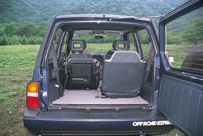 バンは5速MTのみ 商用車登録のバンも同時に発売された。後席スペースを狭めて荷室の床面積を拡大。リアサイドウインドゥには破損防止のガードバーが備わる。