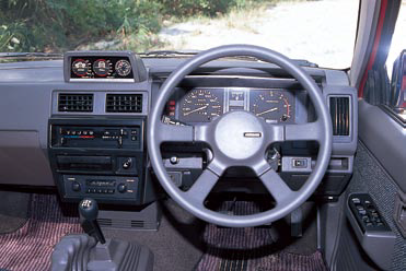 ボディー同様に、直線基調のデザインで構成された車内。遊び心を刺激する宣伝とは裏腹に、実直なデザインは若いユーザーに受け入れられず、初代M720から引き継いだ勢いは失速。ハイラックス4WDに大きく水を開けられたしまった。