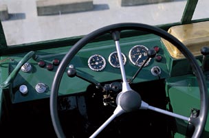コックピットに乗り込んでみよう。ハーフドアだが、意外にも重い感触のドアを開け、ホイールに付けられたリングステップに足をかけ、よじ登る。そこには、トラクターの運転台のような、簡素そのもののコックピットがあった。