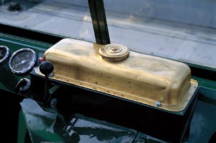インパネ中央に陣取っているのは、なんとラジエターのアッパータンク。冬場は手をかざせば暖が取れるという、冗談のようなホントの話。