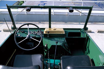 幌屋根は簡単に外すことができ、オープンにするとこのような姿に。ウインドゥは2 分割で可倒式。屋根が無くなると、トラクター然としたスタイルになる。
