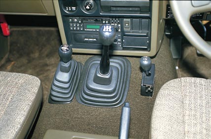 左から、トランスファー、5速MT、PTO ウインチの各レバー。ウインチの駆動力もトランスファーから取り出した。