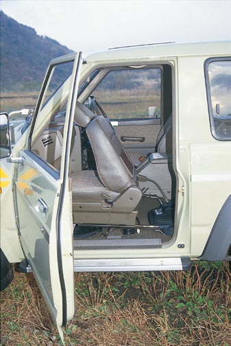 ボディーに直接マウントされるサイドステップは、床下に張り出さず、対地障害角にも影響しない。Y60サファリにはこうした細かい配慮が随所に見られる。