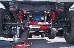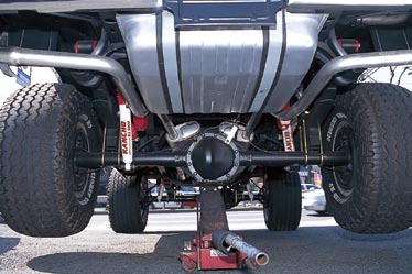 サスペンションは、トラディショナルなリジッド・リーフ。このクルマは4インチ程度のリフトアップが施されている。