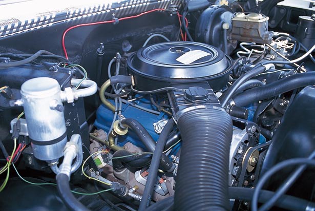 エンジンも大きければ、キャブも大きい。エアクリーナーのリッドを開けると、ロチェスター製4バレルダウンドラフトキャブが大きな口を開けている。アクセルを踏込めば、この巨大なキャブのセカンダリーバルブが開き、ズ太いトルクの盛り上がりを体感させてくれるのだ。