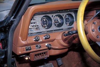 時代を感じさせる凝ったインパネ。操作系レイアウトは運転者中心で、助手席からはヒーターの操作すらできない。