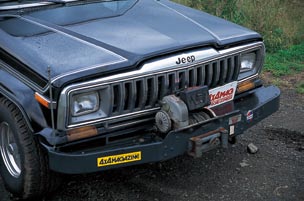 クロームメッキのグリルが上級グレード・ラレードの証。取材車にはウォーンウインチとスチールバンパーが装着されていた。