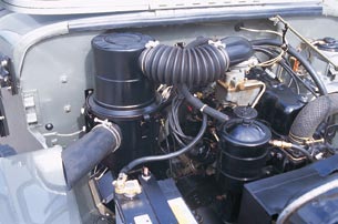 ジープの国産化は車体だけにとどまらず、’55年から三菱製2199 ・70馬力のJH4型ガソリンエンジンが搭載される。JHとはジャパン・ハリケーンの略で、JH4は’57 年の特別調達庁からの大量受注を機に本格生産が始まった。このエンジンは、後にKE31型ディーゼルエンジンのベースにもなる。KE31型はジープJC3に搭載されただけではなく、中型トラックやライトバスにも搭載され、小型高速ディーゼルエンジンとして高く評価された。