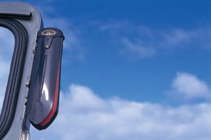 方向指示器はアポロ。ウインカースイッチを操作すると、サッと腕が挙がるが、この位置は乗用車から見にくく、アポロを知らないドライバーも少なくない。