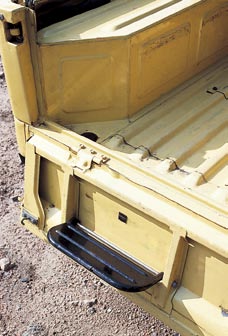 後部シートへのアクセスはリアゲートから。乗り降りのための折り畳みステップがリアゲート裏に備わる。