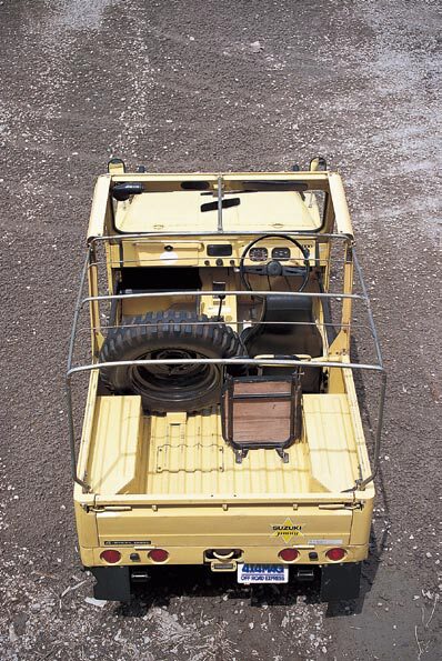 軽自動車規格の変更に伴い、排気量が550ccにスケールアップされたSJ10。車体サイズの枠も拡大されたので、スペアタイヤを車外に設置。